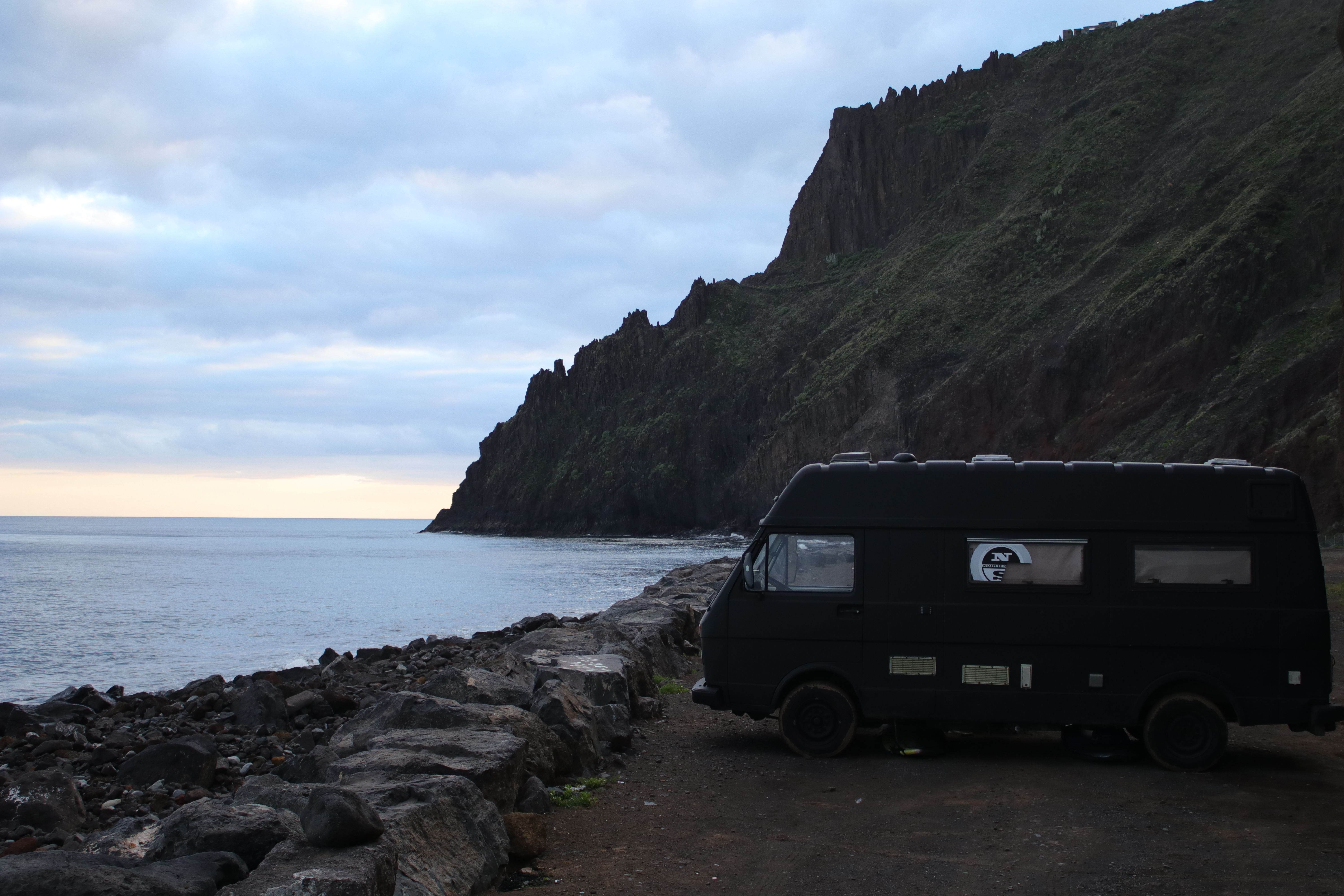 Doch was ist bis zum heutigen Zeitpunkt denn schon alles passiert? Die Achterbahnfahrt begann auf Sylt, wo aus einem lang gehegtem Traum mit der Zeit ein konkreter Wunsch und dann eine gemeinsame Planung wurde. Grob sah der Plan so aus: Transporter kaufen – selber zum Wohnmobil ausbauen – dahin fahren, wo es sonnig ist und man surfen kann. So weit so gut. Ein mobiles Zuhause war auch schnell gefunden, ein VW LT 28 sollte es sein. Ein Charaktergefährt, das uns noch das eine oder andere Mal die Hände auf den Kopf schlagen lassen soll. Die zweimonatige Probetour auf die Kanaren mit dem alten Ausbau zeigte uns aber, dass diese Art des Reisens genau das ist, was uns gefällt und dass wir auch mit Rückschlägen zurechtkommen.
